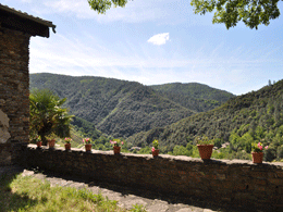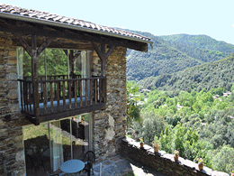 De la cuisine nous entrons dans un grand salon de 40 m2 également avec une belle cheminée et de grandes baies coulissantes invitant à la découverte d’un patio de 70 m2 bien exposée vers la vue. Un W.C. avec lave-mains. Du salon, un escalier mène à l’étage vers deux chambres de 15,67 et 16,60 m2 avec la charpente apparente, toutes deux pourvues de baies et de balcons couverts pour admirer le paysage. Une salle d’eau avec W.C.. Cette demeure de charme confortable, au calme sans être isolée, avec une vue splendide, de beaux volumes éclairés par de grandes ouvertures, des patios intimes et la rivière proche avec ses baignades, parfaitement rénovée, vous offre en plus un logement indépendant de 40 m2, équipé pour recevoir vos amis ou vos hôtes payants.
