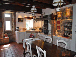 Enkele minuten van de winkels verwijderd en in een stille omgeving gelegen is dit Verblijf een juweel te noemen met prachtige raamomlijstingen uit de 16de eeuw en de gehele architectuur van het gebouw is bewonderingswaardig. Het is met respect in de originele stijl gerenoveerd en geniet van hedendaags comfort. Mooie betegelde terrassen gedeeltelijk begroeit met geurende blauwregen uitkijkend op de mooie aangelegde tuin met een zwembad van 5 x 5 m2 en zonneterrassen. Aparte toilet.