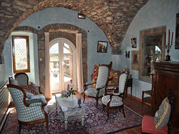 Het hoofdgebouw opent in de ontvangsthal waar op het eerste niveau alle vloeren met aardewerktegels belegd zijn en de muren opnieuw gevoegd, de plafonds hebben alle hun houten balken bewaard. Een eerste salon van 39,50 m2 is vanuit de hal te bereiken waar een schitterende openhaard van meer dan 4 meter troont.