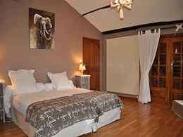 Vanuit de ontvangsthal loopt een eikenhouten trap naar een overloop en betreden we de hoofd slaapkamer van 27,50 m2 met een privé badkamer (waterstralen ligbad, 2 wastafels, hangtoilet). Ook hier weer de originele balken aan het plafond die hun bijdrage voor authenticiteit verhogen. In de andere vleugel lopen we via de overloop naar de andere kant van het huis en treffen er de speelkamer van 48,50 m2 en krijgen we toegang naar een slaapkamer van 21,07 m2 met een balkon van 6,50 m2 en een badkamer (ligbad, wastafel, toilet) van 5,67 m2. Een eikenhouten trap