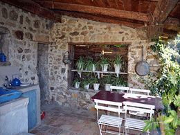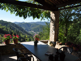 In dit piepkleine gehucht op het Zuiden gelegen met een overheersend uitzicht op de vallei en de heuvels in de verte is deze authentieke eigendom verbouwd in een charmante comfortabele woning en 2 apart gelegen gastenverblijven in het tweede gebouw. Omgeven door een aangelegde terrasvormige tuin in het bezit van een zwembad van 8 x 4 m met een betegeld zonneterras en een beschermend elektrisch rolluik. Het hoofdhuis geniet van een overdekt terras van 27 m2, een ware zomer salon met een ongelooflijk uitzicht. We betreden de salon van meer dan 26 m2 waar ons onmiddellijk een originele openhaard opvalt en de aardenwerktegeltjes op de vloer. Enkele treden lager is de keuken van 16 m2 compleet gebruiksklaar ingericht in een landelijke stijl. Een bijkeuken van 7 m2 heeft een tweede aanrecht en volop bergruimte. Enkele tientallen meters van de hoofdwoning is er een tweede gebouw met 3 verdiepingen en gelijkvloers een keldertje en een werkruimte. We nodigen u uit om dit buitengewone aantrekkelijke geheel te komen bekijken, waar u familie en gasten apart kunt ontvangen in een prachtige omgeving.