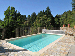 Aan de voet van de Ardechois heuvels, 20 minuten van Aubenas, ligt in een gehuchtje met een schitterend uitzicht, een charmant gerenoveerde eigendom verbouwd met edele materialen; het bestaat uit een hoofdhuis van 143 m2 en een apart gelegen woning met 2 gastenverblijven voor 4 personen van 47 m2 en 58 m2 met 5382 m2 land waarvan 1300 m2 aangelegde tuin met zwembad en betegeld zonneterras met een overdekte garage voor 4 auto’s, een overdekte garage voor 2 auto’s en een parkeerplaats voor de ingang. |
