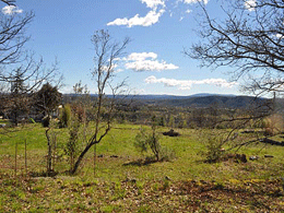 SOUTH ARDECHE, about 20 min from AUBENAS, a very attractive plot of land to build of 3107 m2, no connexion yet, with an east and south oriented panoramic view, at the edge of a village with all shops: large flat terraces and spring. A project to build a contemporary house of 170 m2 on one level with a swimming pool has been accepted.