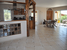 Voici une demeure très confortable avec de grand volumes à vivre dans un esprit méridional, construite là où la vue est la plus imprenable sur les environs, des Cévennes jusqu’aux Préalpes, dans un environnement à la fois serein et proche des commodités. En grande partie de plain-pied, entourée de terrasses couvertes, la maison s’ouvre par une ancienne porte d’église restaurée, sur un large dégagement ouvert sur un espace en deux parties, le salon avec cheminée et la salle à manger avec la cuisine en chêne et granit avec un ilot central, pour un total de plus de 83 m2. Le double garage, accessible par un patio couvert accueille également la buanderie. Une maison dans laquelle vous pouvez vous installer et tout de suite profiter de sa situation privilégiée en Ardèche méridionale.