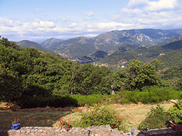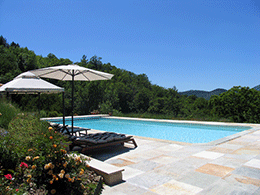 Met het uitzicht op de bergen, ligt het zwembad van 12 x 5 m op het zuiden gericht met een fijn terras betegeld met grote stenen plavuizen.