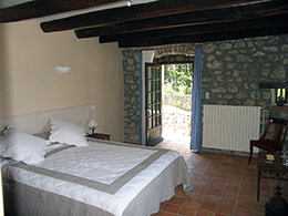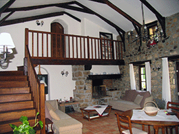 Het eerste gedeelte heeft een schitterend terras van 35 m2 met drie glazen deuren. De eerste opent in de zitkamer van 38 m2 met een openhaard en zichtbare oude balken aan een hoog plafond. Een houten trap leidt naar een mooie slaapkamer van 25.16 m2 met badkamer, ligbad, wastafel en toilet, schitterend betegeld met handgemaakte tegels. Dubbele glazen deur naar een intiem terrasje.